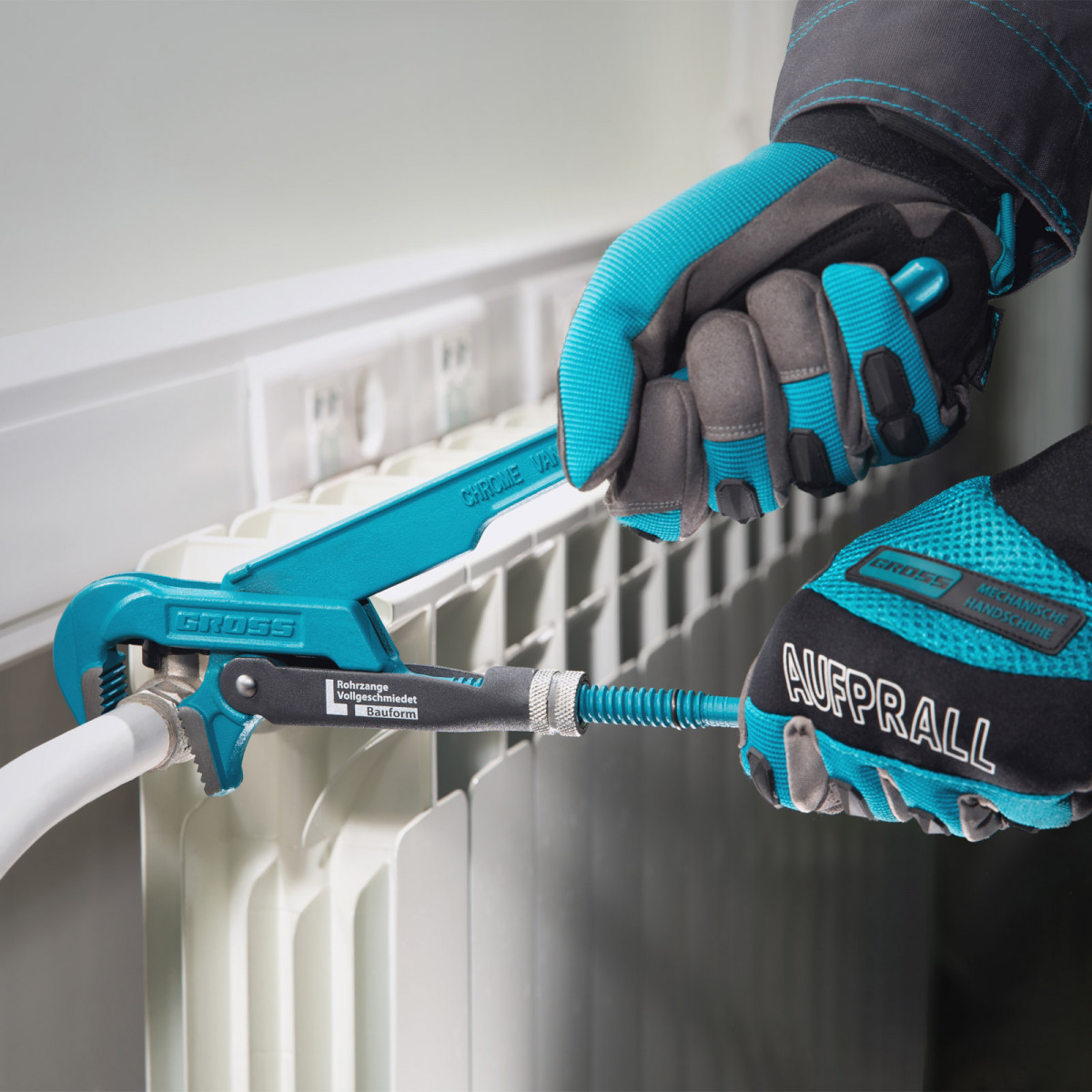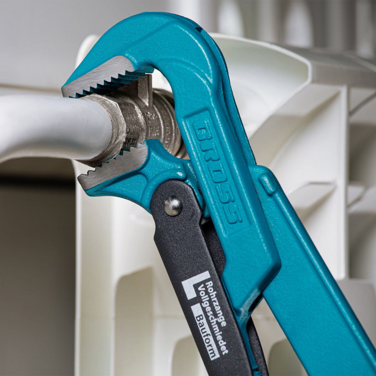 • Самоблокируемый захват труб и деталей — зубья прогрессивной формы наклонены против направления вращения.