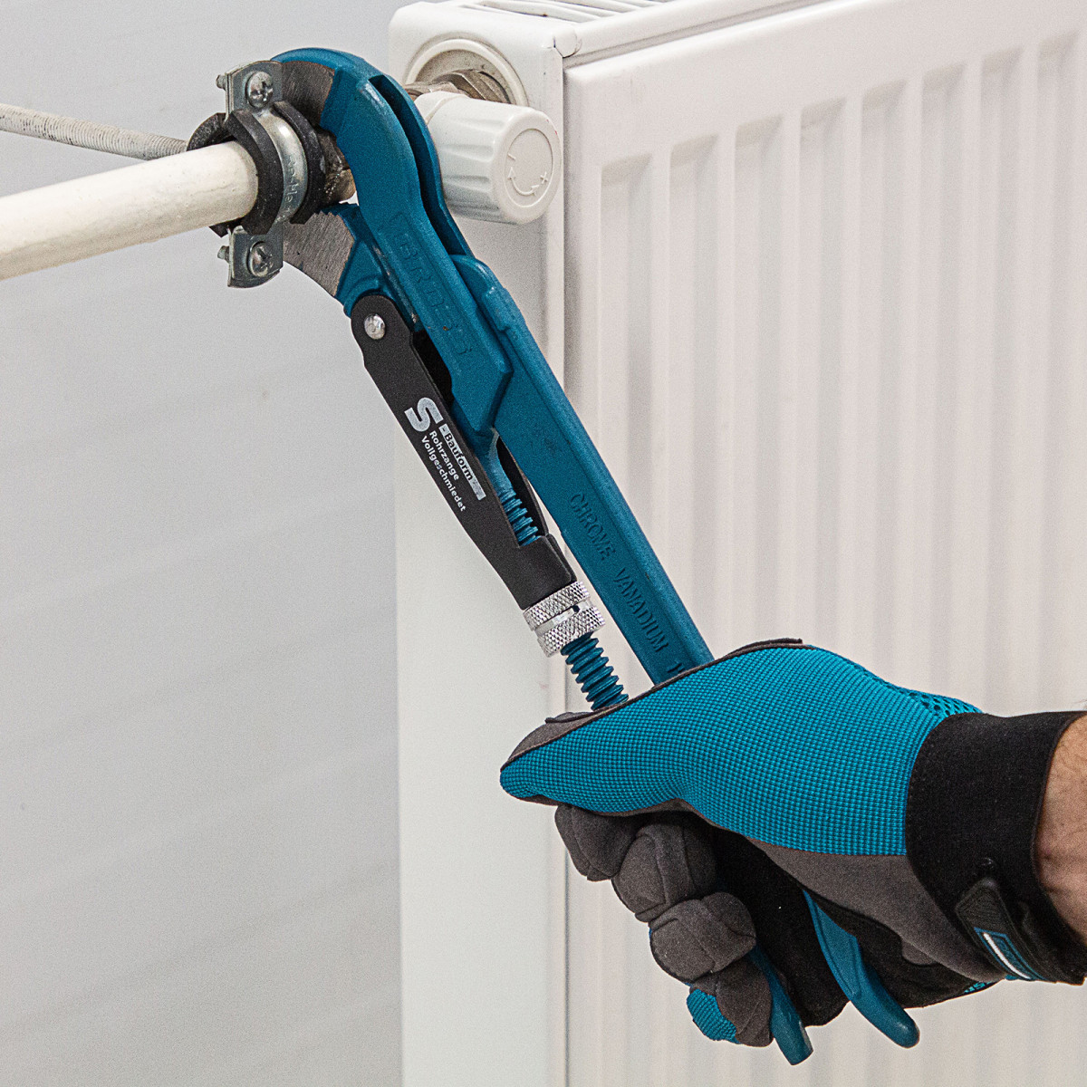 Цельнокованый трубный рычажный ключ Gross №1 15611 из стали CrV, тип «S», предназначен для захвата и вращения труб и соединительных деталей диаметром 1″. Ключ S-образной формы крепко захватывает плоские и объемные предметы, а также позволяет работать в труднодоступных местах. Рычажный механизм увеличивает прикладываемое усилие, что снижает усталость мастера. Инструмент выдерживает интенсивное использование, поэтому пригодится сотрудникам автосервиса, коммунальных служб, а также будет полезен в быту.