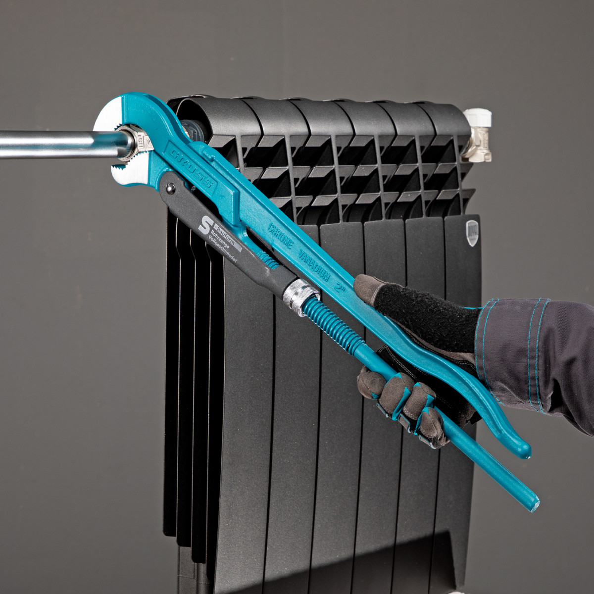 Цельнокованый трубный рычажный ключ Gross №3 15615 из стали CrV, тип «S», предназначен для захвата и вращения труб и соединительных деталей диаметром 2″. Ключ S-образной формы крепко захватывает плоские и объемные предметы, а также позволяет работать в труднодоступных местах. Рычажный механизм увеличивает прикладываемое усилие, что снижает усталость мастера. Инструмент выдерживает интенсивное использование, поэтому пригодится сотрудникам автосервиса, коммунальных служб, а также будет полезен в быту.