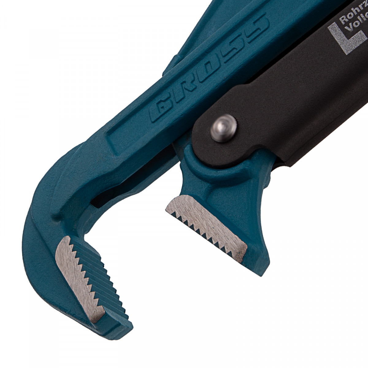 • Самоблокируемый захват труб и деталей — зубья прогрессивной формы наклонены против направления вращения.