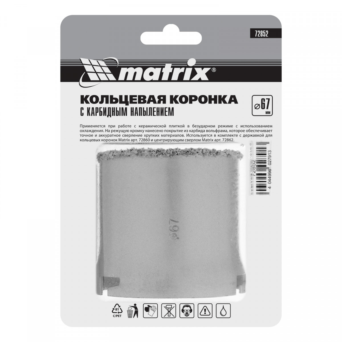 Кольцевая коронка с карбидным напылением, 67 мм Matrix