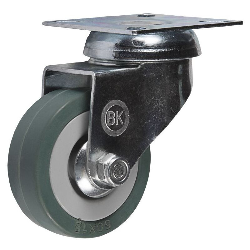 Поворотная аппаратная колесная опора SCg42 относится к легкой серии колес. Ободная часть поворотной аппаратной колесной опоры изготовляется из серого полипропилена с двумя боковыми пыльниками, защищающими осевой механизм от повреждения посторонними веществами и пылью.Главной особенностью поворотных аппаратных колесных опор серии SCg42 является термоэластичный контактный слой, не наделяющий следами любые поверхности пола. Благодаря отмеченным особенностям шинки, поворотные аппаратные колесные опоры SCg42 применяются для аппаратуры, бытовой и офисной мебели, для медицинской техники и оборудования, металлической мебели, стеллажей, на тележки-"шпильки"для пищевых производств, для гостиничного оборудования и химчисток.В основе поворотного механизма аппаратной колесной опоры опоры находится двухрядный шариковый подшипник. В оси поворотной колесной опоры аппаратного типа SCg42 применена втулка скольжения.Поворотные аппаратные колесные опоры обладают типовым креплением: крепление с помощью опорной площадки четырьмя болтами. Термические условия эксплуатации аппаратных колесных опор находятся в рамках от - 20°С до +50°С. Максимальная грузоподъемность – 55 кг.