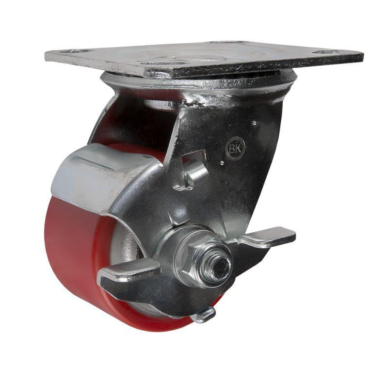 Использование большегрузных полиуретановых колесных опор с тормозом ограничивается следующими термическими условиями от - 35°С до +50°С. Применяются для платформенных тележек, сейфов, шкафов и промышленного оборудования большого веса. Динамическая нагрузка – 200 кг.
