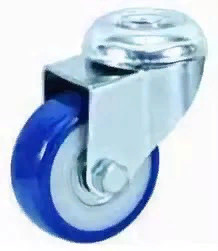 Колесные опоры аппаратные поворотные, PVC покрытие, полипропиленовый обод, крепление под болт, шарикоподшипник. Поворотные колесные опоры, крепление - отверстие под один центральный болт. Полипропиленовый обод колеса с шинкой из темно серой резины, твердость 85±3° Shore A, не оставляет следов на полу.