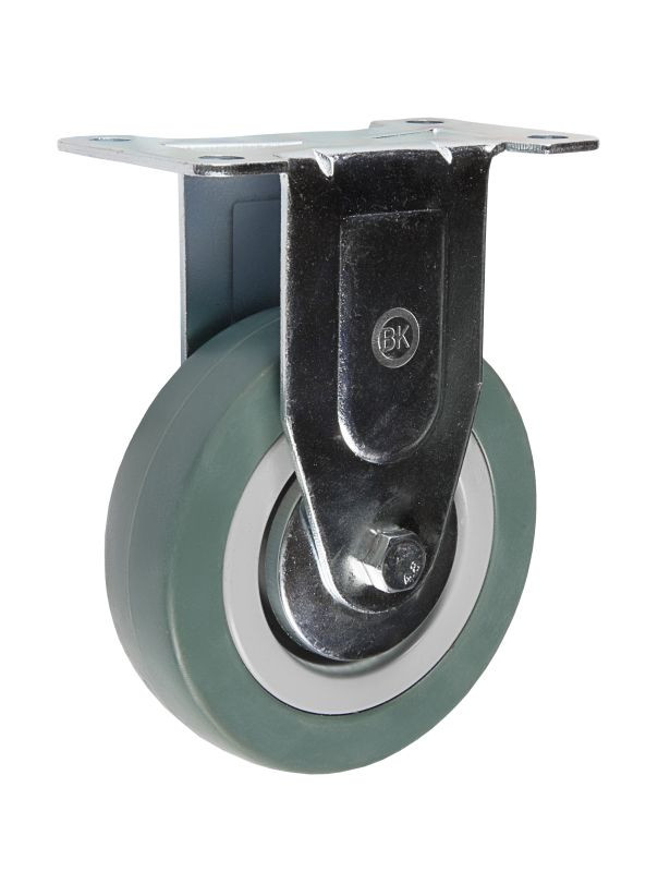 Колесо аппаратное неповоротное  FCg 92 предназначено для легкого торгового, лабораторного, медицинского, гостиничного, офисного и складского оборудования. Шинка выполнена из термопластичной серой резины. В оси установлен подшипник скольжения. Кронштейн с платформенным креплением изготовлен из оцинкованной стали. Не оставляет следов на напольных покрытиях. Отличается хорошими ходовыми качествами, повышенной маневренностью, низким уровнем шума, устойчивостью к внешним химическим воздействиям. Диапазон температур — от -35ºC до +60ºC.