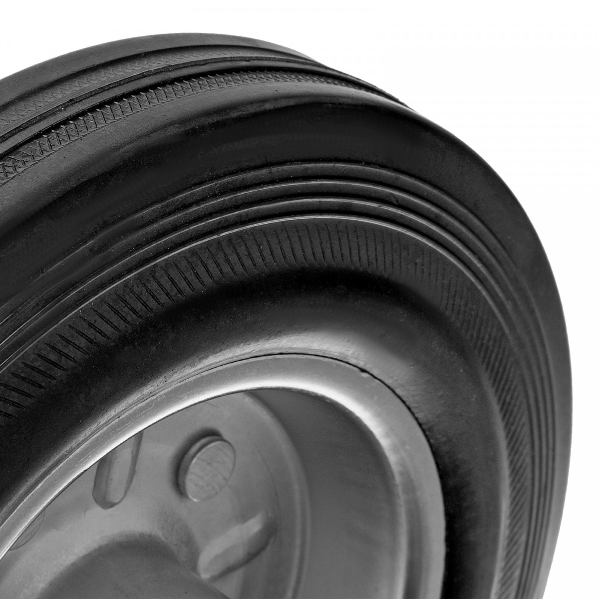 - Универсальность — контактная поверхность выполнена из прочной резины, поэтому колесо может применяться на различных покрытиях, долгое время сохраняя рабочие качества.