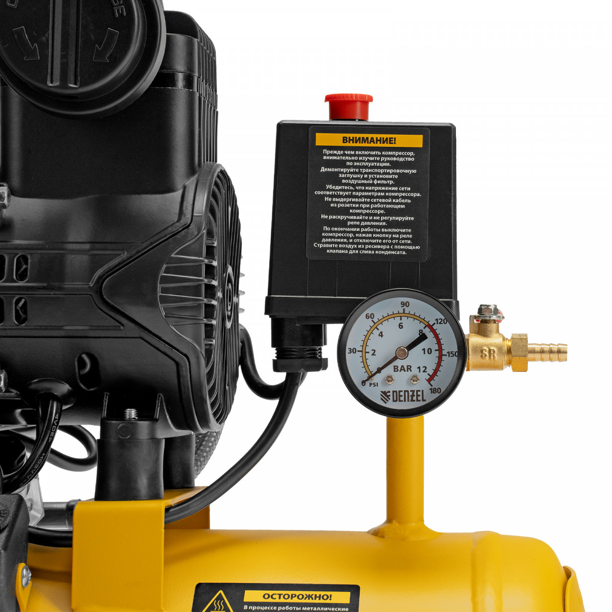Компрессор безмасл. малошумный DLP-950/10, 950Вт,10 л, 2850 об/мин, 170 л/мин Denzel