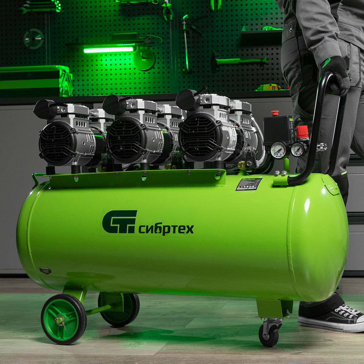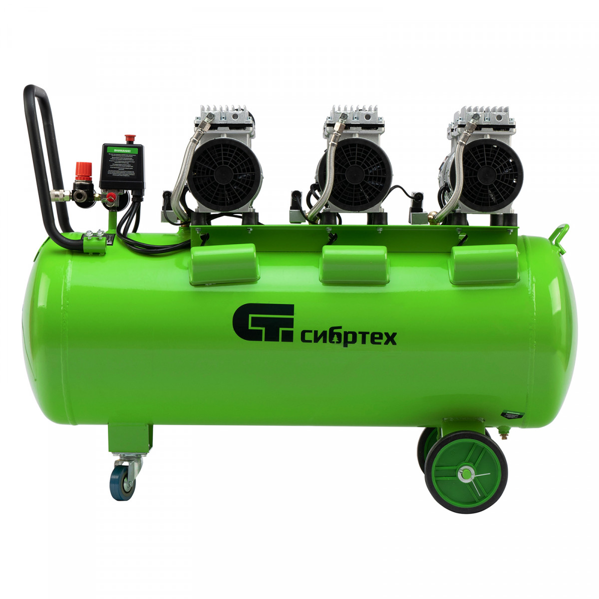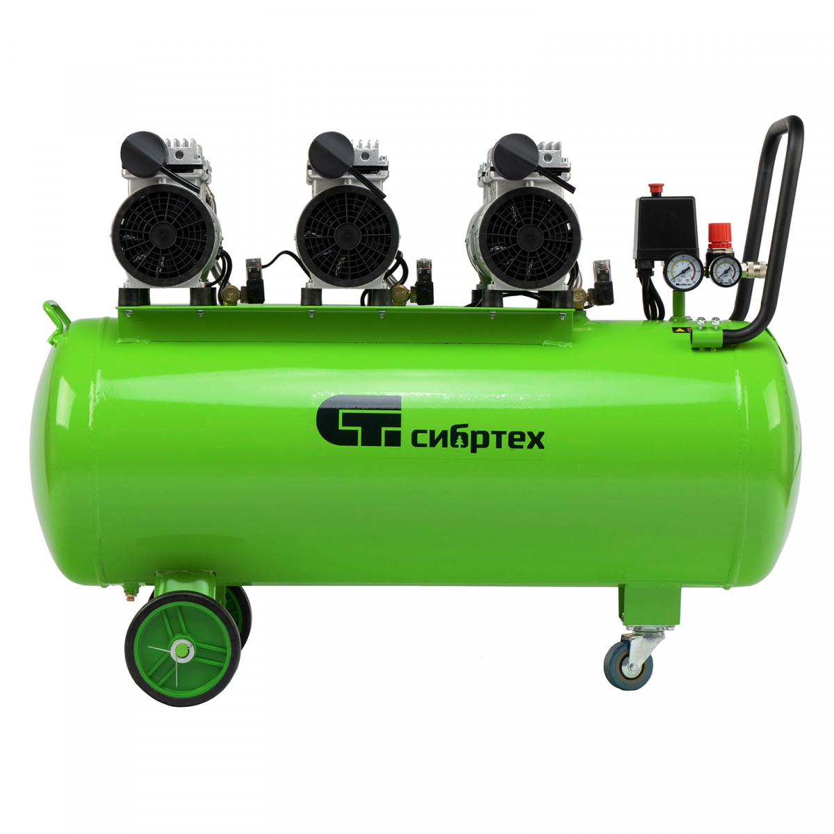 Компрессор безмаслянный малошумный МБ 2250/100, 2250 Вт, 100л, 400 л/мин Сибртех
