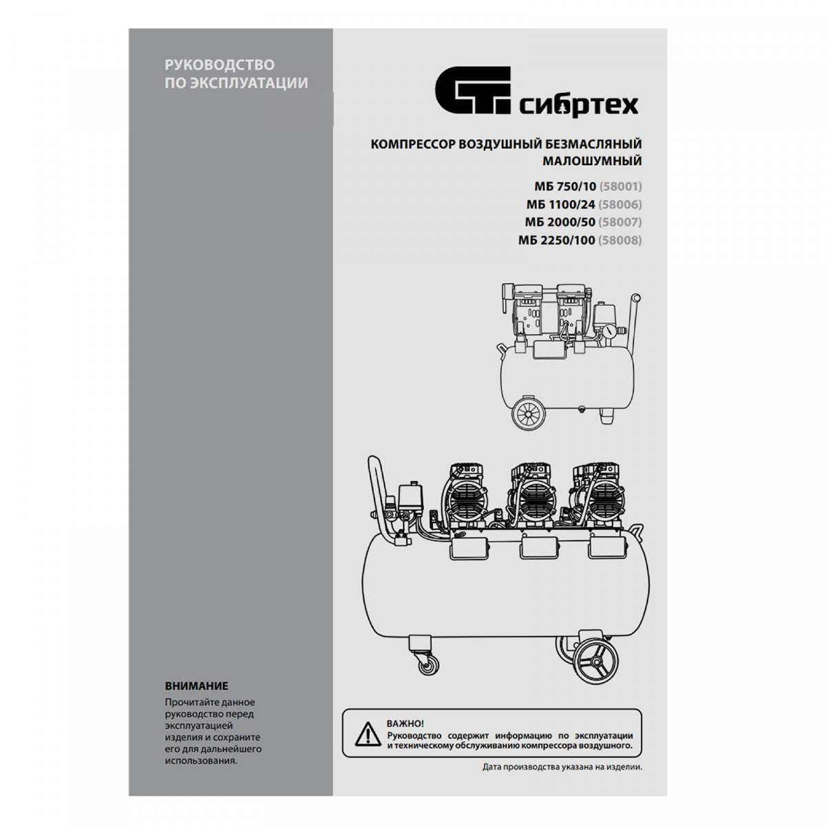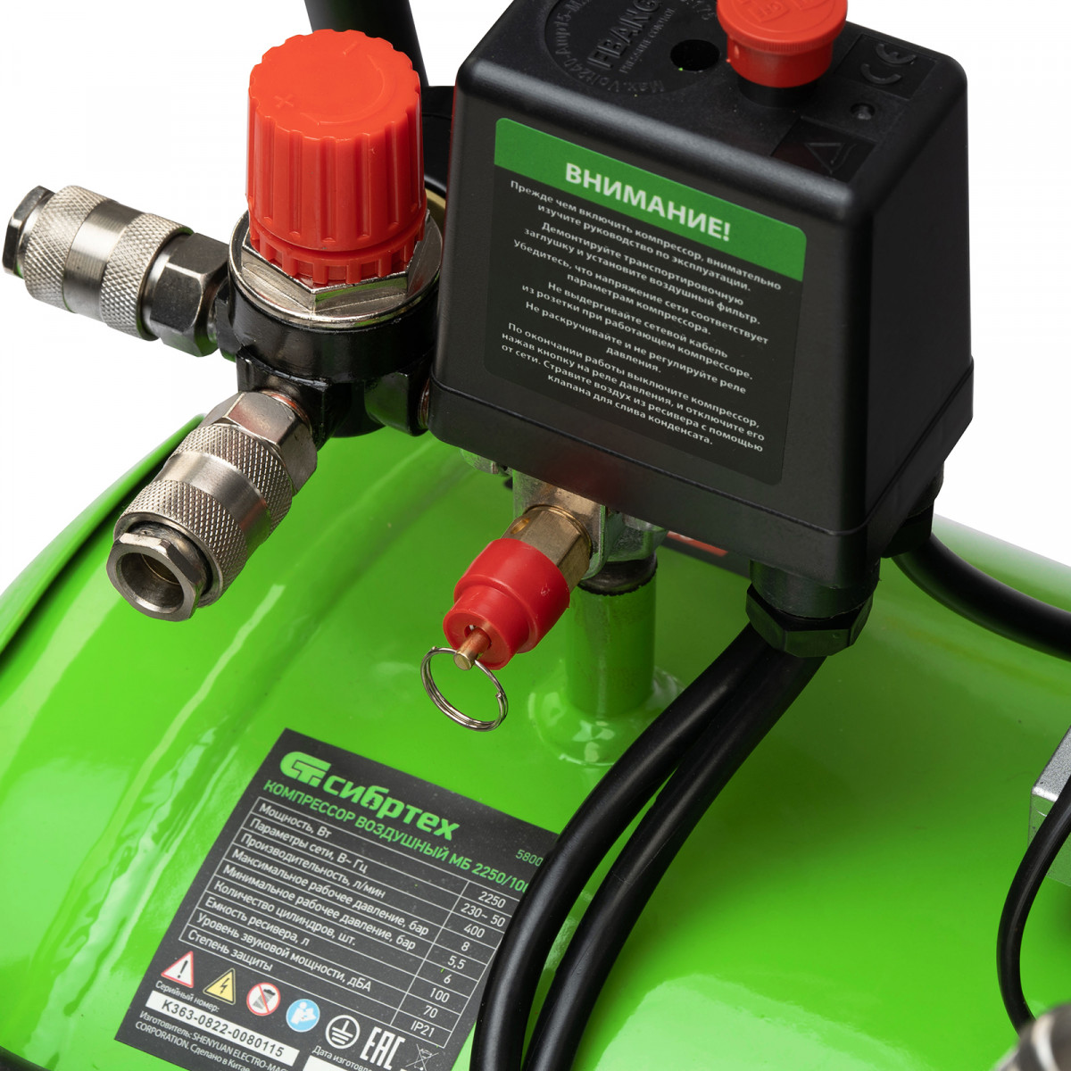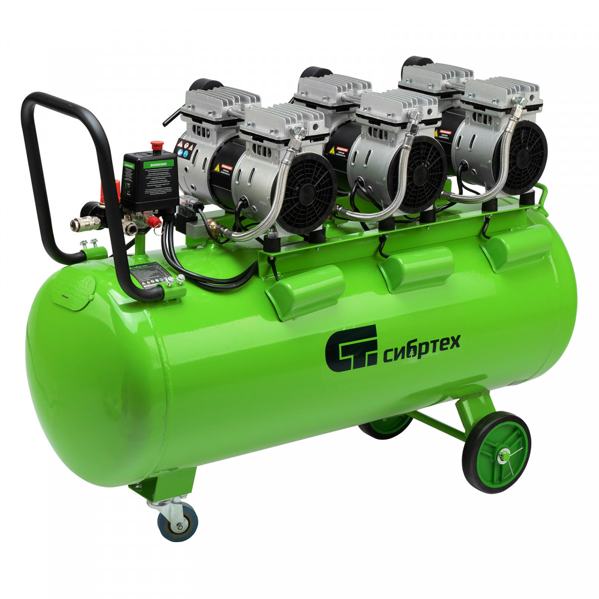 Компрессор безмаслянный малошумный МБ 2250/100, 2250 Вт, 100л, 400 л/мин Сибртех