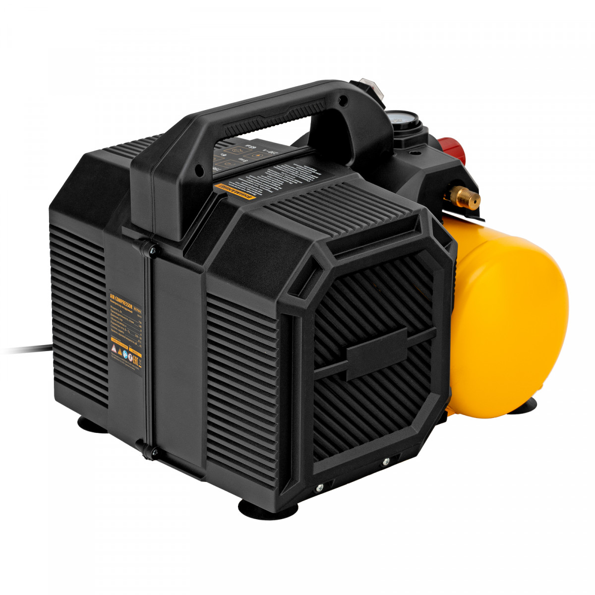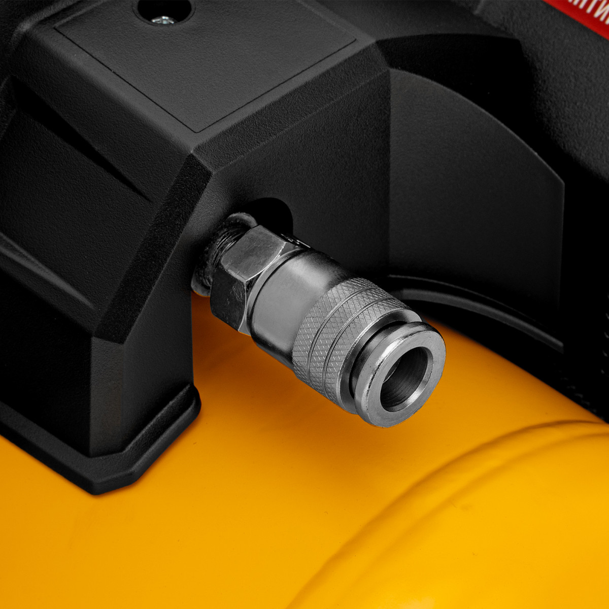 • Удобный контроль давления в ресивере — на компрессор установлен механический манометр, «смотрящий» вверх, поэтому для снятия показаний не нужно присаживаться.