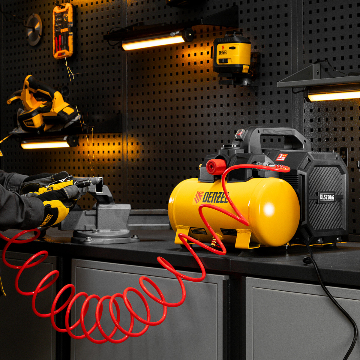 Компрессор безмасляный малошумный Denzel DLS750/6 58019 мощностью 750 Вт, с ресивером объемом 6 л, имеет производительность на входе 140 л/мин и предназначен для обеспечения пневмоинструмента сжатым воздухом. Оптимален для работы с краскораспылителем и продувочным пистолетом, т.к. воздух на выходе не содержит частиц масла. Рабочий узел закрыт сплошным кожухом, благодаря чему уровень шума во время работы не превышает 65 дБ. Компрессор можно использовать в жилом помещении и на дачном участке.
