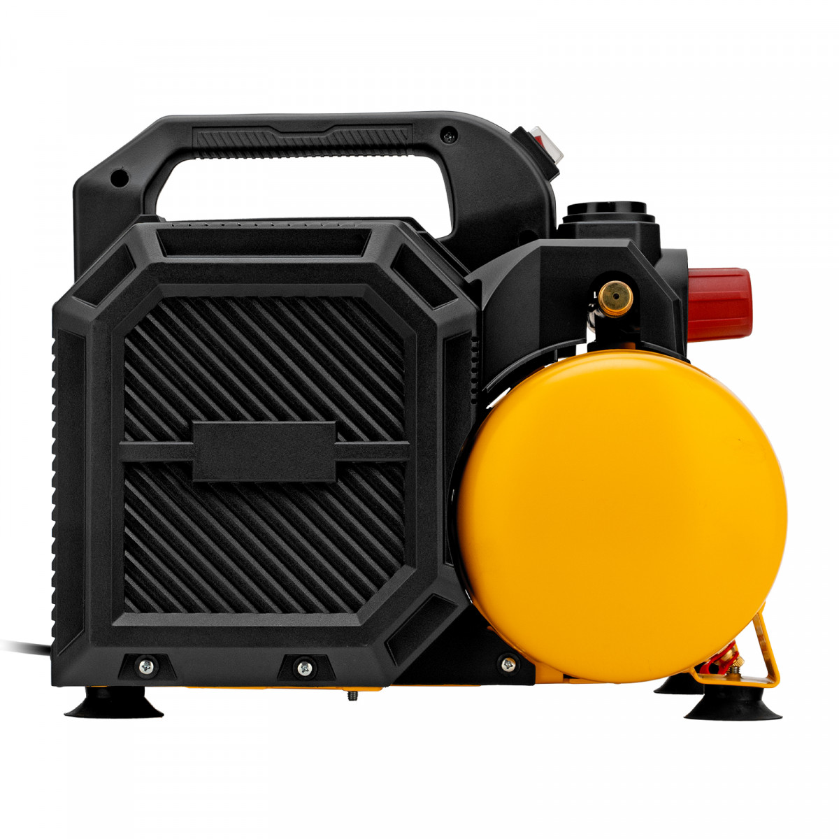 • Минимальный уровень вибраций в сравнении с масляными аналогами — компрессор установлен на резиновые опоры-присоски.