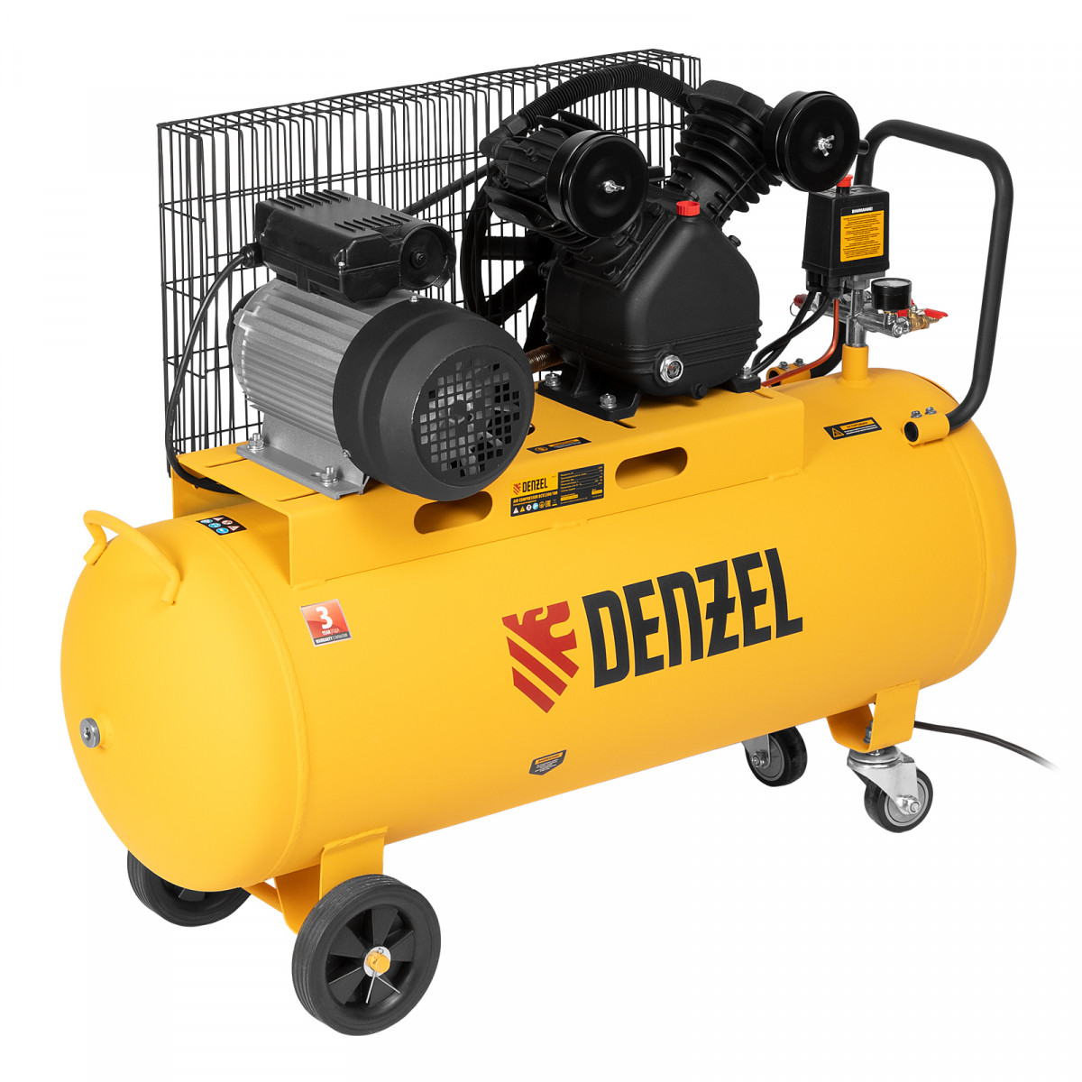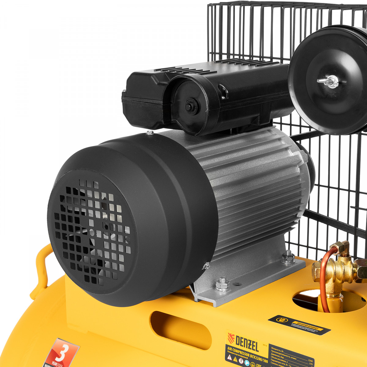 Компрессор воздушный BCV2200/100, ременный привод, 2.2 кВт, 100 литров, 370 л/мин Denzel