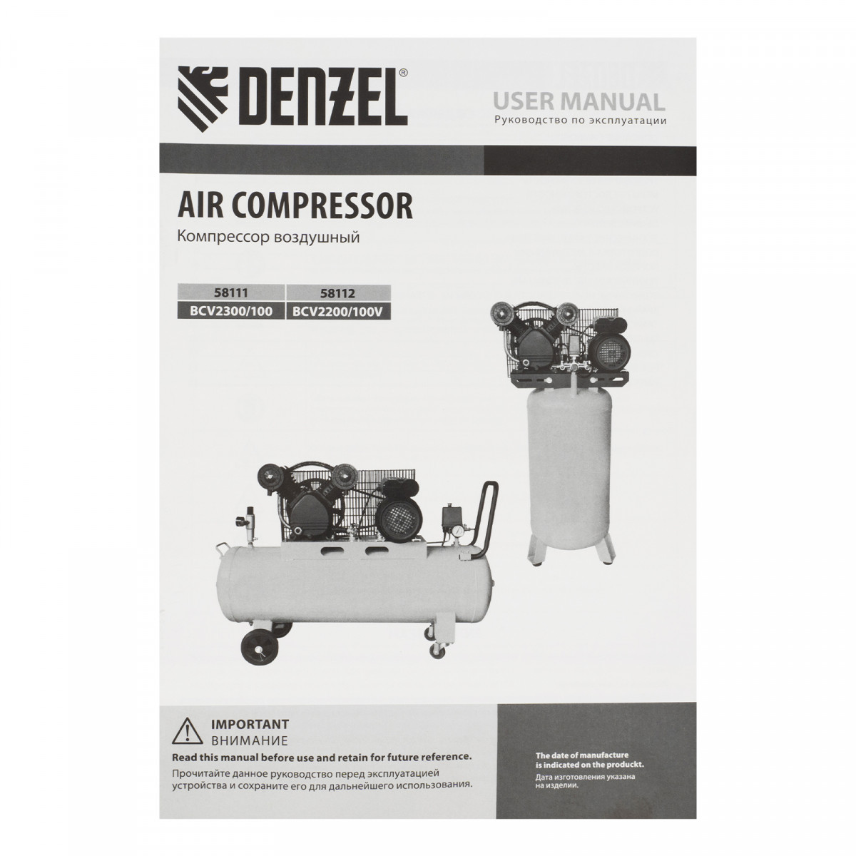 Компрессор воздушный с ременным приводом Denzel BCV2200/100V 58112 мощностью 2,3 кВт, с ресивером объемом 100 л используется для обеспечения сжатым воздухом таких инструментов, как краскораспылитель, гайковерт, гвоздезабивной пистолет, дрель, пистолет для накачки шин и пр. Высокая производительность 440 л/мин позволяет использовать его не только в загородных домах и гаражах, но и на фабриках, станциях технического обслуживания автомобилей, в различных мастерских.,Сжатый воздух накапливается в ресивере объемом 100 литров. Он располагается вертикально, что позволяет сэкономить место на рабочей площадке. Для устойчивости компрессор крепится к стене или полу.