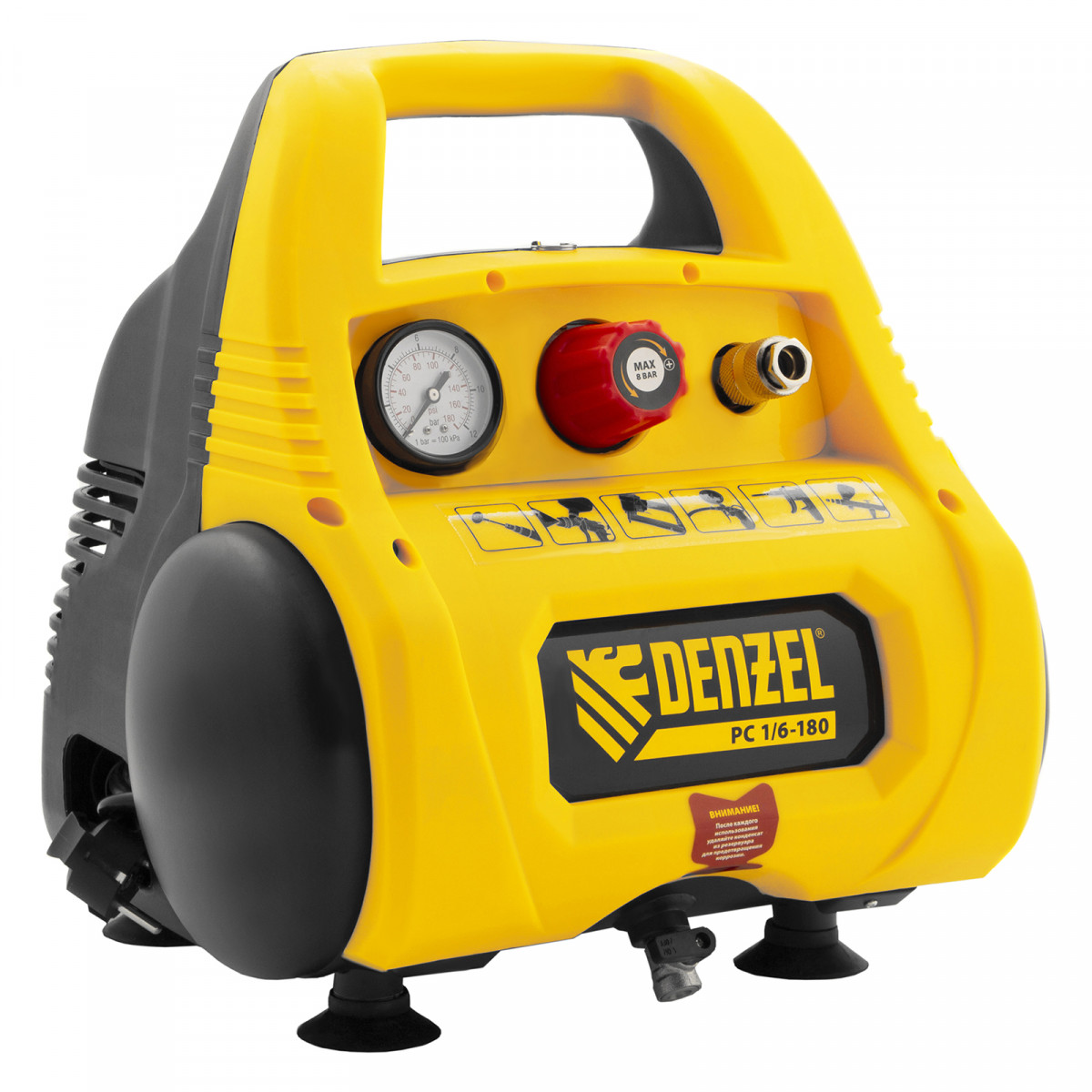 Компрессор воздушный безмасляный РС 1/6-180,1, 1 кВт, 180 л/мин, 6 л Denzel