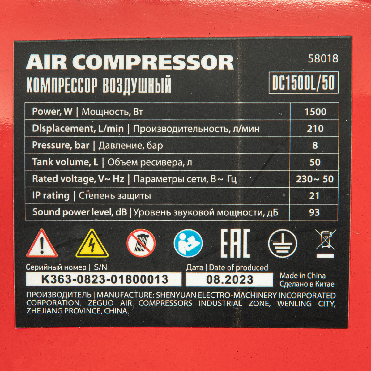 Компрессор воздушный DC1500L/50, 1,5 кВт, 50 л, 210 л/мин MTX