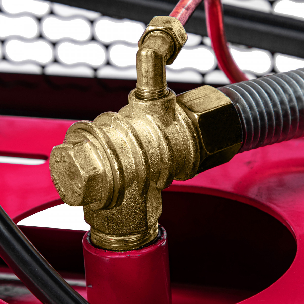 - Автоматическая регулировка производительности — прессостат останавливает двигатель при достижении максимального рабочего давления (8 бар) и запускает его при падении давления ниже минимально допустимого уровня.