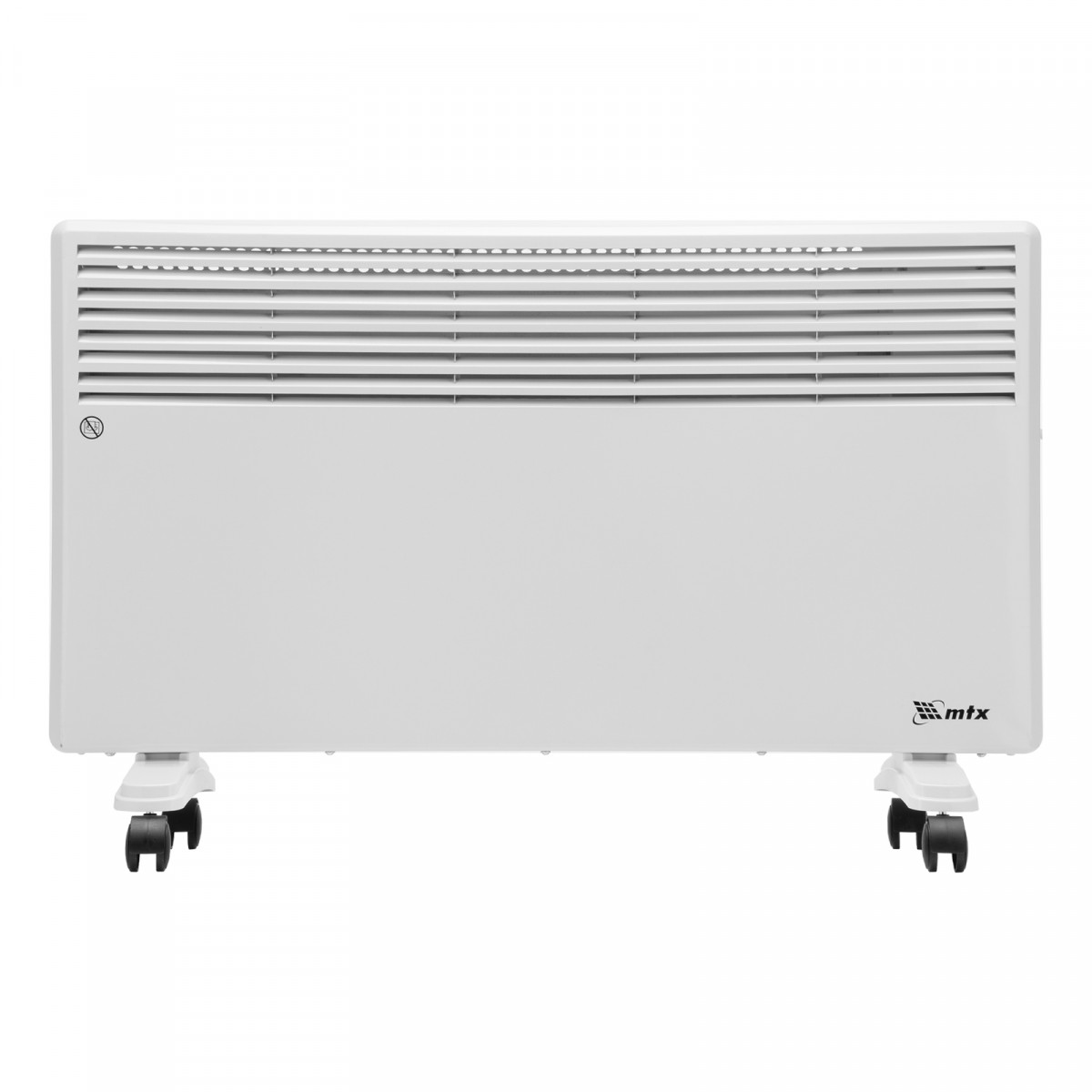 Электрический конвектор MTX CH-2000 98107 максимальной мощностью 2000 Вт, с X-образным нагревателем, термостатом и колесами, — источник тепла для жилых, офисных и хозяйственных помещений. X-образный нагревательный элемент позволяет быстро и равномерно нагреть помещение до нужной температуры. Площадь обогрева составляет 25 м2.
