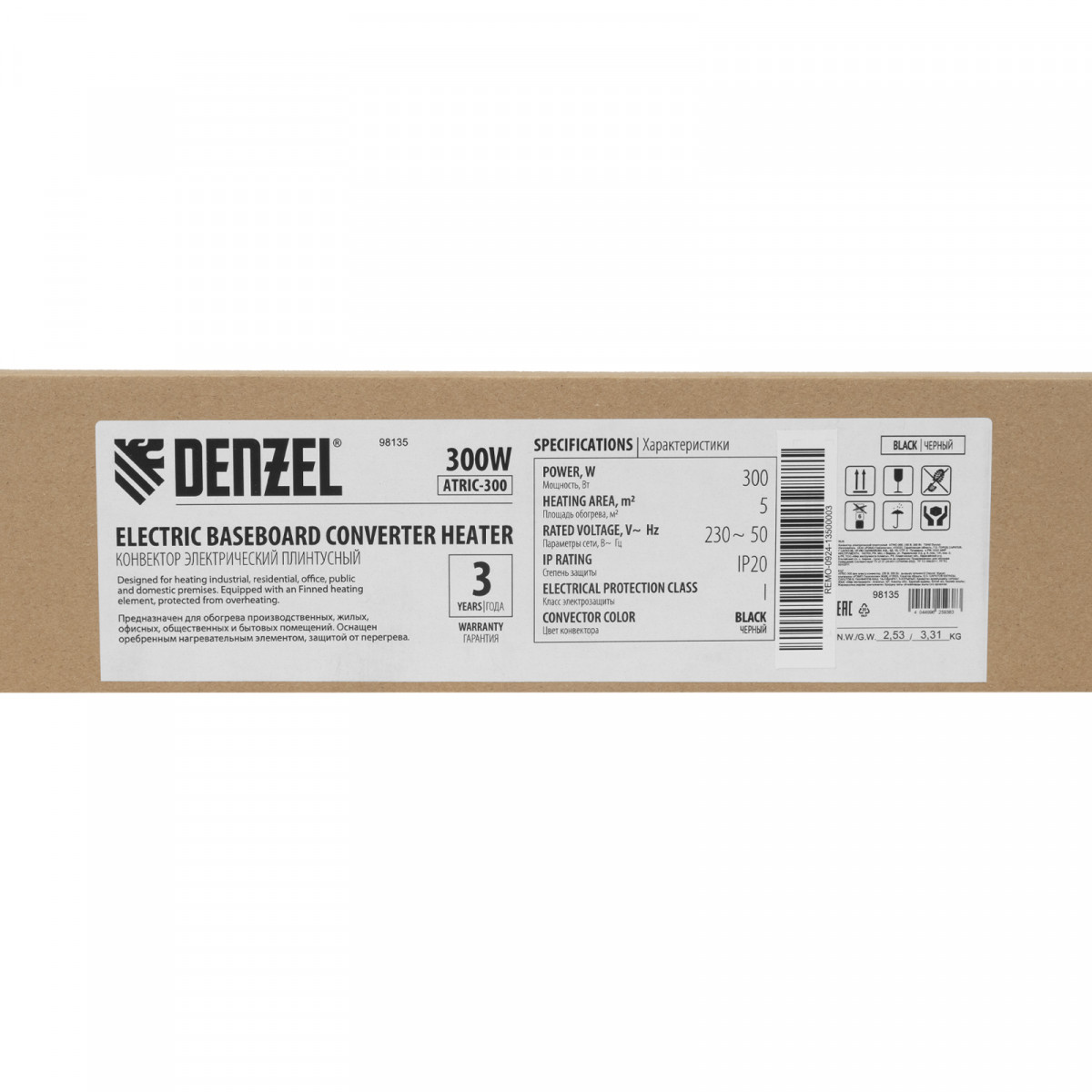 Конвектор электрический плинтусный ATRIC-300, 230 В, 300 Вт, ТЭН, черный Denzel