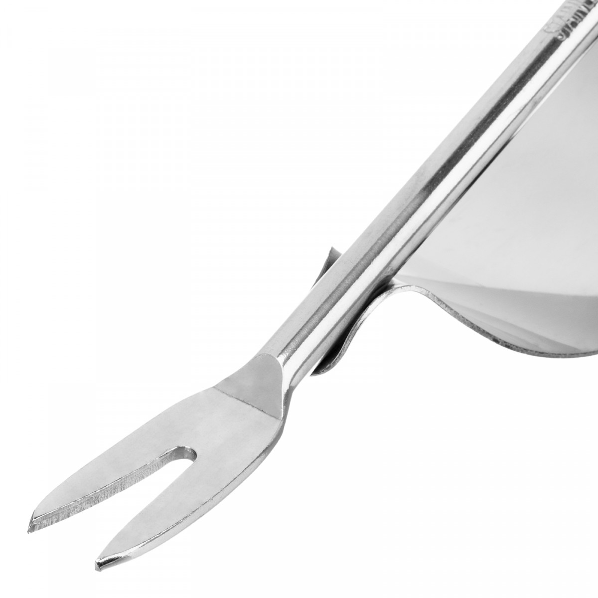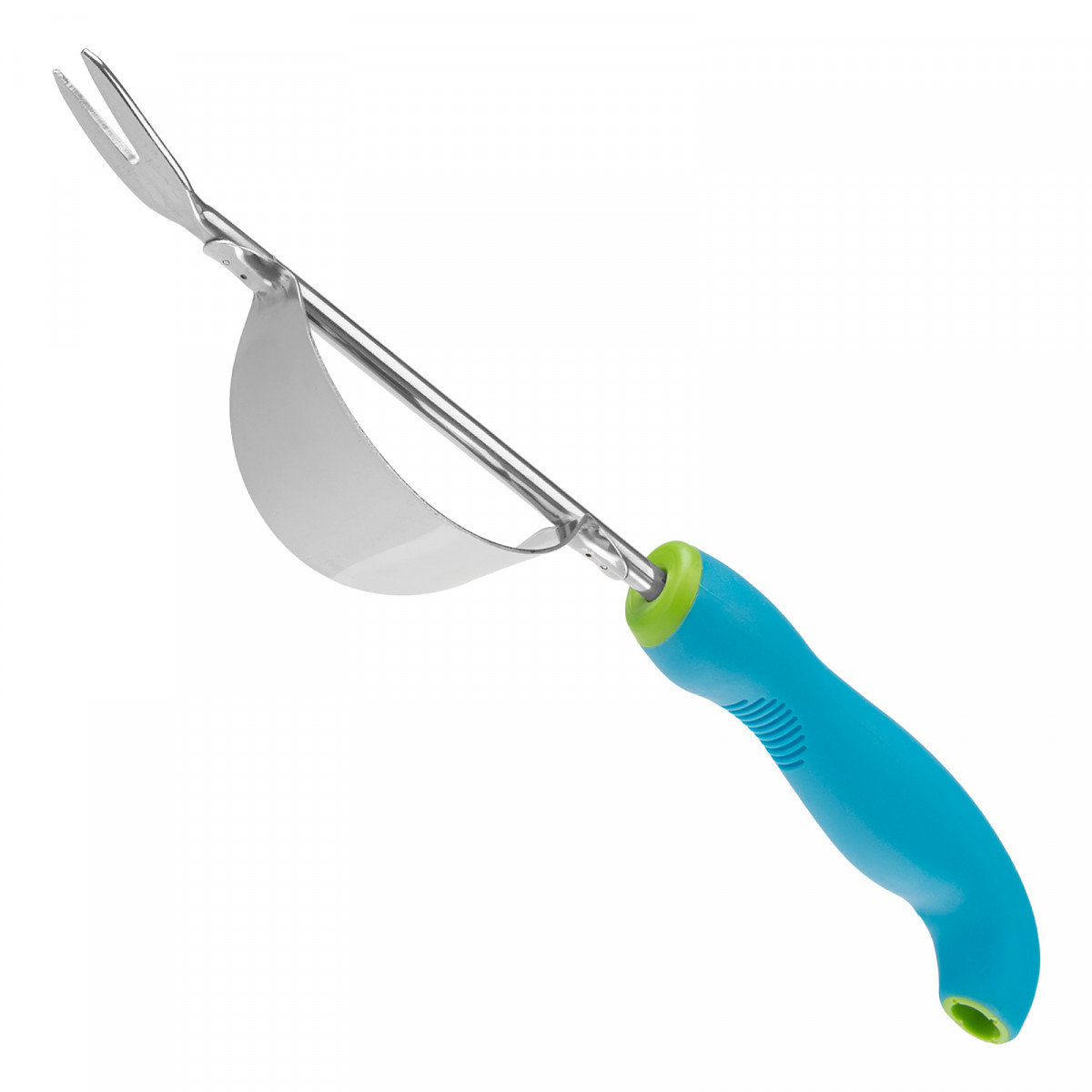 - Продуманная конструкция — заостренный раздвоенный наконечник легко проникает в грунт и захватывает сорняк с корнем, а полукруглый упор позволяет без труда извлечь его из почвы, не повредив культурные растения.