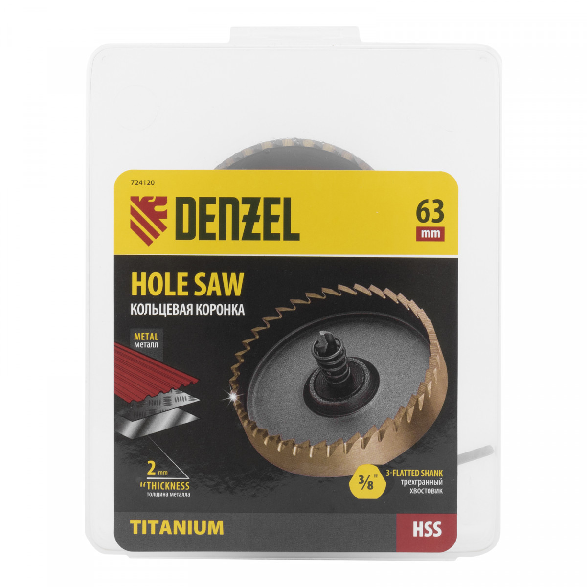 Коронка по металлу HSS, 63 мм, нитридтитановое покрытие Denzel