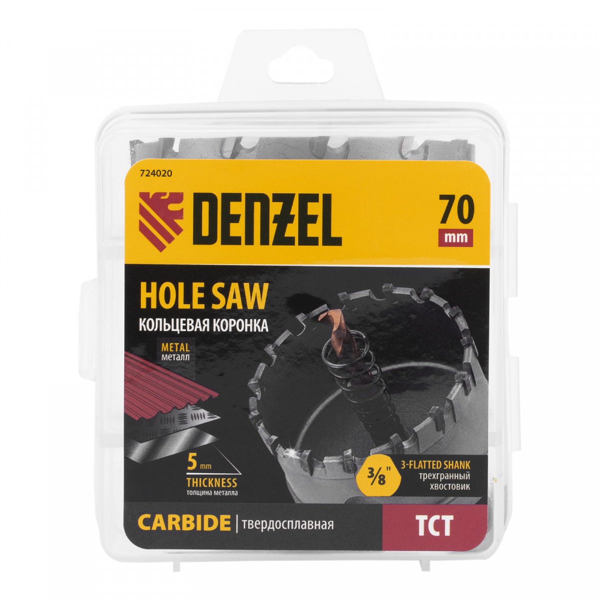 Коронка по металлу твердосплавная, 70 мм Denzel