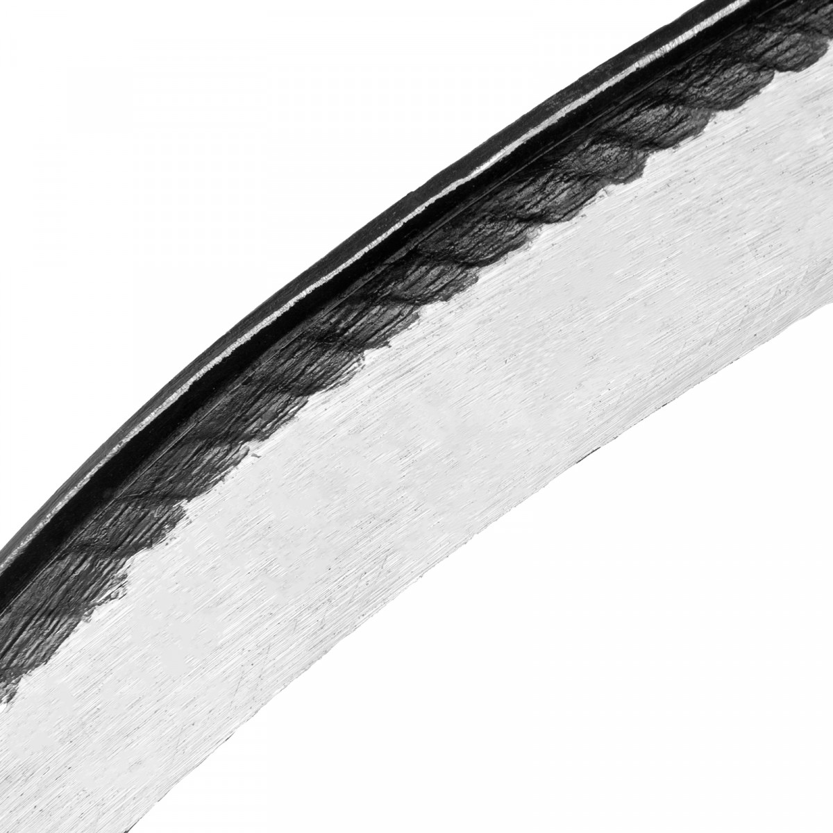 • Высокие режущие свойства — твердость рабочей кромки составляет 39-49 HRC, поэтому коса долго держит заточку.