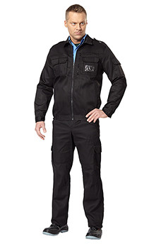 Рекомендуется для охранных структур, работы, активного отдыха. Состоит из куртки и брюк. Куртка прямого силуэта с центральной застежкой на молнию, отложным воротником. Оснащен нагрудными накладными карманами с клапанами на липучках для средств связи, имеется карман на молнии для документов. Поверх кармана прозрачное окно для бейджа. На рукаве накладной карман с клапаном. Объем талии брюк регулируется эластичной лентой. Артикулированные колени. Низ штанин регулируется эластичным шнуром.