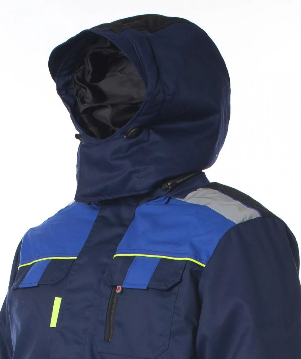 Куртка прямого силуэта, длинная, с притачной утепленной подкладкой, с ветрозащитной прокладкой из ткани «Лаке», Воротник стойка, пристегивающимся утепленным капюшоном, Центральной застежкой на тракторную тесьму-молнию накрытую ветрозащитным клапаном на липучках, внутренним ветрозащитным клапаном, нижними прорезными карманами с листочкой Низ рукавов регулируется по ширине при помощи пат и липучек, По линии талии куртка регулируется по ширине. Полукомбинезон прямого покроя, с притачной утепленной подкладкой, с ветрозащитной прокладкой из ткани «Лаке», с центральной застежкой на тракторную тесьму «молния», На куртке и полукомбинезоне настрочены светоотражающие полосы 5мм для обеспечения безопасности работ Ткань верха Rodos с ВО пропиткой, 65%-п/э, 35%-х/б, пл. 245 гр./кв.м. Ткань "Флис" 100% п/э. Подклад "Лаке" 100% п/э. Утеплитель: Синтепон в куртке 480 г/кв.м., в полукомбинезоне 360 г/кв.м.