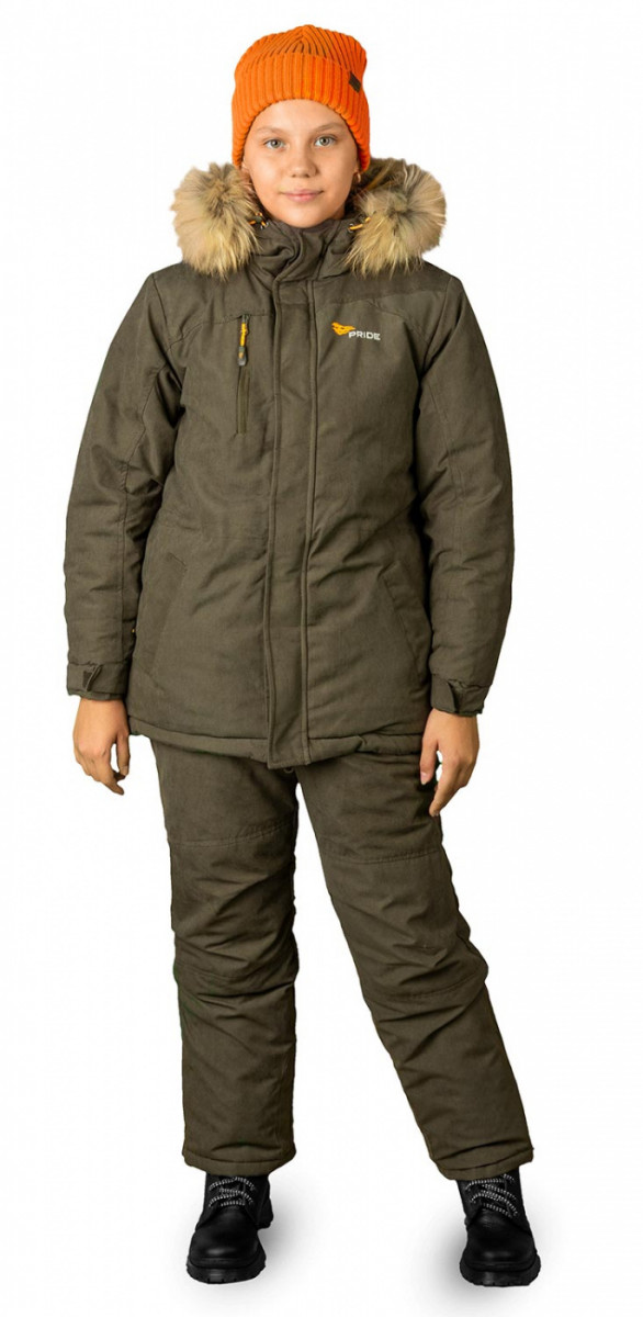 Ткань: исландия хаки Состав: 85% пэ, 15% нейлон, 200 г/м2 Подклад: алова без мембраны, 100% п/э Утеплитель: "Русский север" Детский костюм Лион обладает всеми достоинствами взрослых моделей. Он выполнен из мембранной ткани Исландия, что дает защиту от ветра и мокрого снега. Высокий комбинезон дополнительно защищает грудь и спину от холода.
