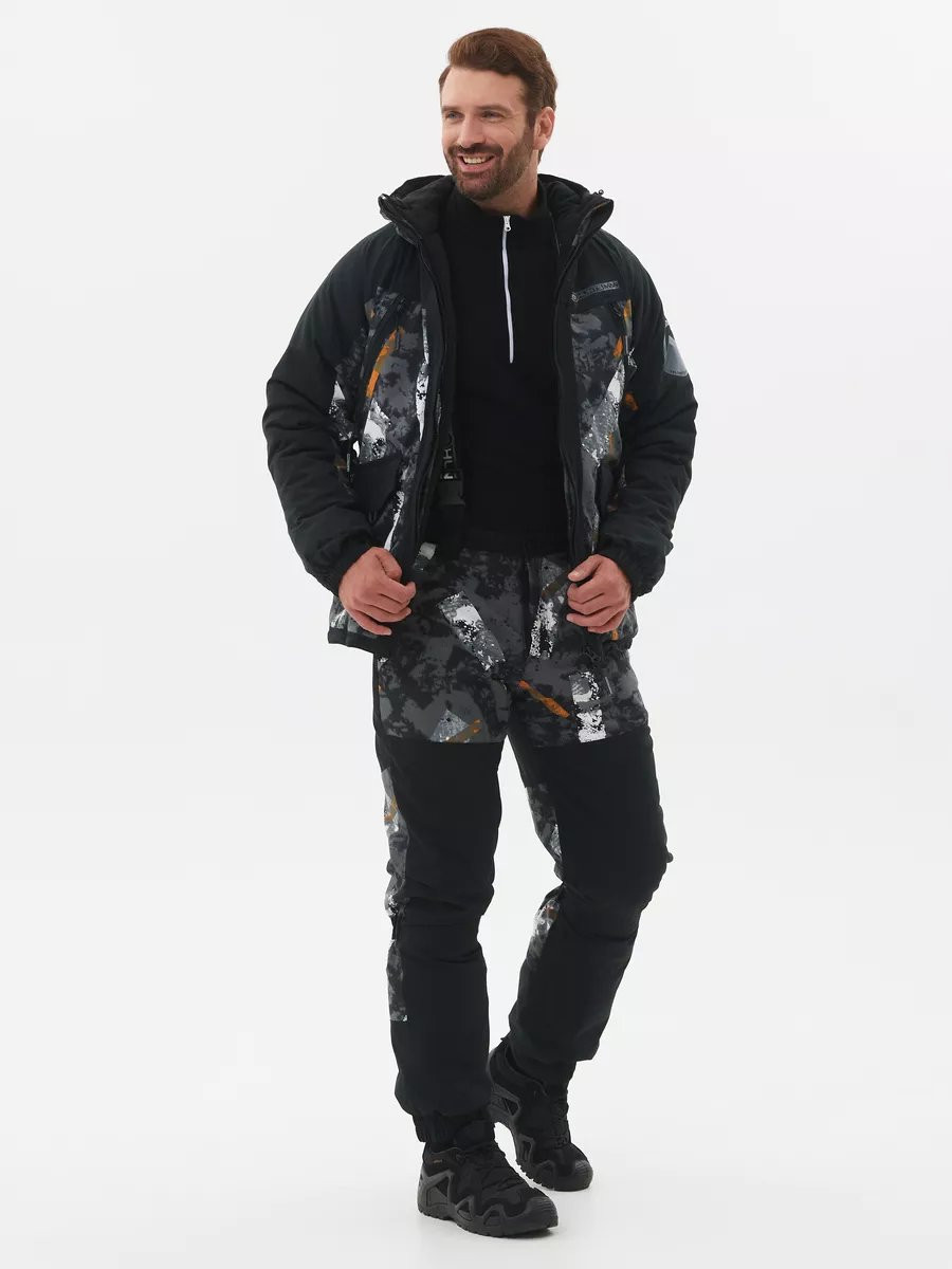 Куртка: капюшон с регулировкой эргономичный крой рукава-реглан 2 нагрудных кармана на молнии 2 полуобъёмных кармана-«непотеряшки» с клапаном на магнитной кнопке низ рукава собран на резинку двухзамковая молния Брюки: регулируемые съёмные помочи 2 классических кармана на молнии складка в области колена внутренние гетры, для защиты от пыли Тк. Исландия (23% nylon, 77% polyester) (10000 мм вд. ст./10000 гр/м2/24 час) Утеплитель Radotex 250 гр/м2 Подкладка Polar Fleece 180 гр/м2