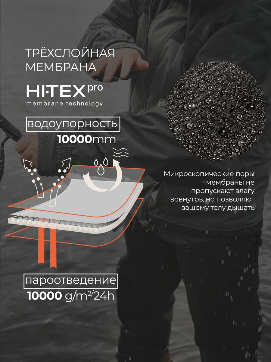 Водонепроницаемость 10000 мм/м2/24час делает костюм зимний STRONG -40 ПК идеальным для защиты от влаги и снега.
