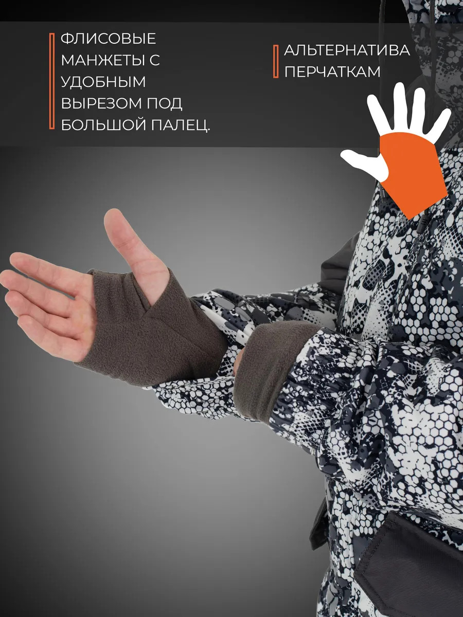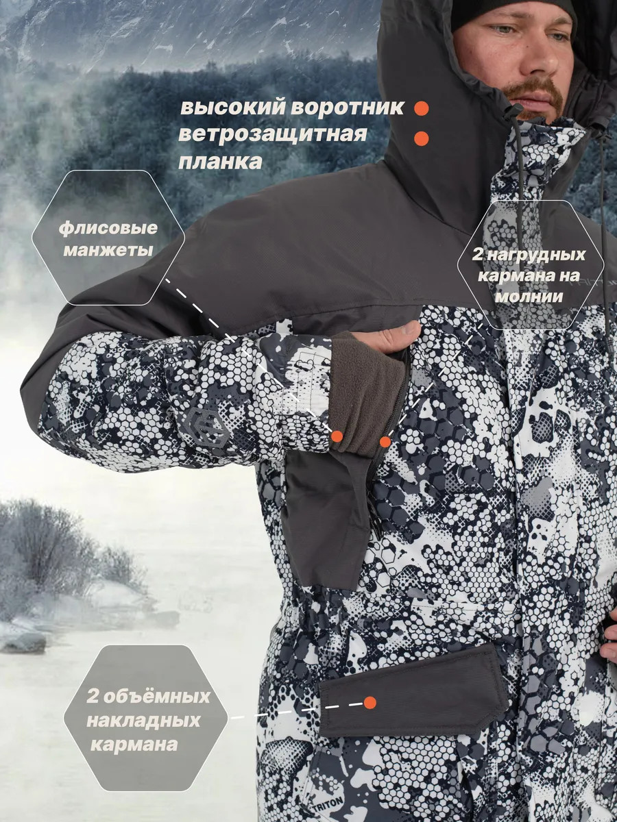 Костюм "STRONG" -40 ПК (Алова, Белый)- это зимний костюм с полукомбинезоном, который отлично зарекомендовал себя среди охотников, рыболовов и любителей активного отдыха, подойдет под любое увлечение в зимний период. Рекомендуется использовать с термобельем Termo craft арт.279285980, или аналог. При низких температурах рекомендуется дополнительно использовать вторым слоем флисовый костюм Triton RICH арт.388130799. Таким образом, правильным будет использование с 1-ым слоем - термобельем, 2-ым слоем - флисовым комплектом и поверх надеваете костюм. При ношении мембранных костюмов не рекомендуем использовать вещи из натуральных тканей, таких как хлопок, или шерсть. Вещи из натуральных тканей не испаряют влагу тела, а накапливают ее в себе (намокают) и, как следствие вы сначала мокнете, а потом замерзаете. Изготовлен из материала Алова (100% полиэстер) – нешуршащей, мягкой на ощупь, долговечной, устойчивой к истиранию и многократным изгибам мембранной ткани нового поколения с высокими показателями паропроницаемости и водостойкости (10000/10000). Сочетает в себе теплоизолирующие, ветро- и влагоустойчивые показатели и прочность наружного слоя. Внешняя поверхность блокирует ветер, а внутренний слой ткани защищает от избыточной влаги. Отделка ТАСЛАН (100% нейлон) - современная мембранная ткань с высокими прочностными характеристиками. Утеплитель TRITERM – создан из ультратонких волокон - на 30% тоньше и легче обычного синтепона. Подклад Флис - мягкий ворсистый материал, позволяет телу дышать, отводит влагу от тела, быстро сохнет и обладает теплоизолирующими свойствами. Куртка средней длины Брюки полукомбинезон с эластичными вставками Ветрозащитная планка центральной молнии. Двухзамковые молнии на куртке и брюках 6 внешних карманов и внутренний карман на куртке 4 кармана на брюках. Анатомический крой колена. Анатомический крой рукава. Регулируемый капюшон. Регулировка ширины по низу куртки. Эластичные манжеты на рукавах с прорезью под большой палец. Противосугробные манжеты.