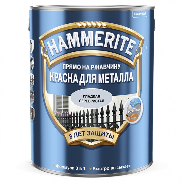 Краска Hammerite молотковая серая по металлу прямо на ржавчину 3 в 1 0,5 л