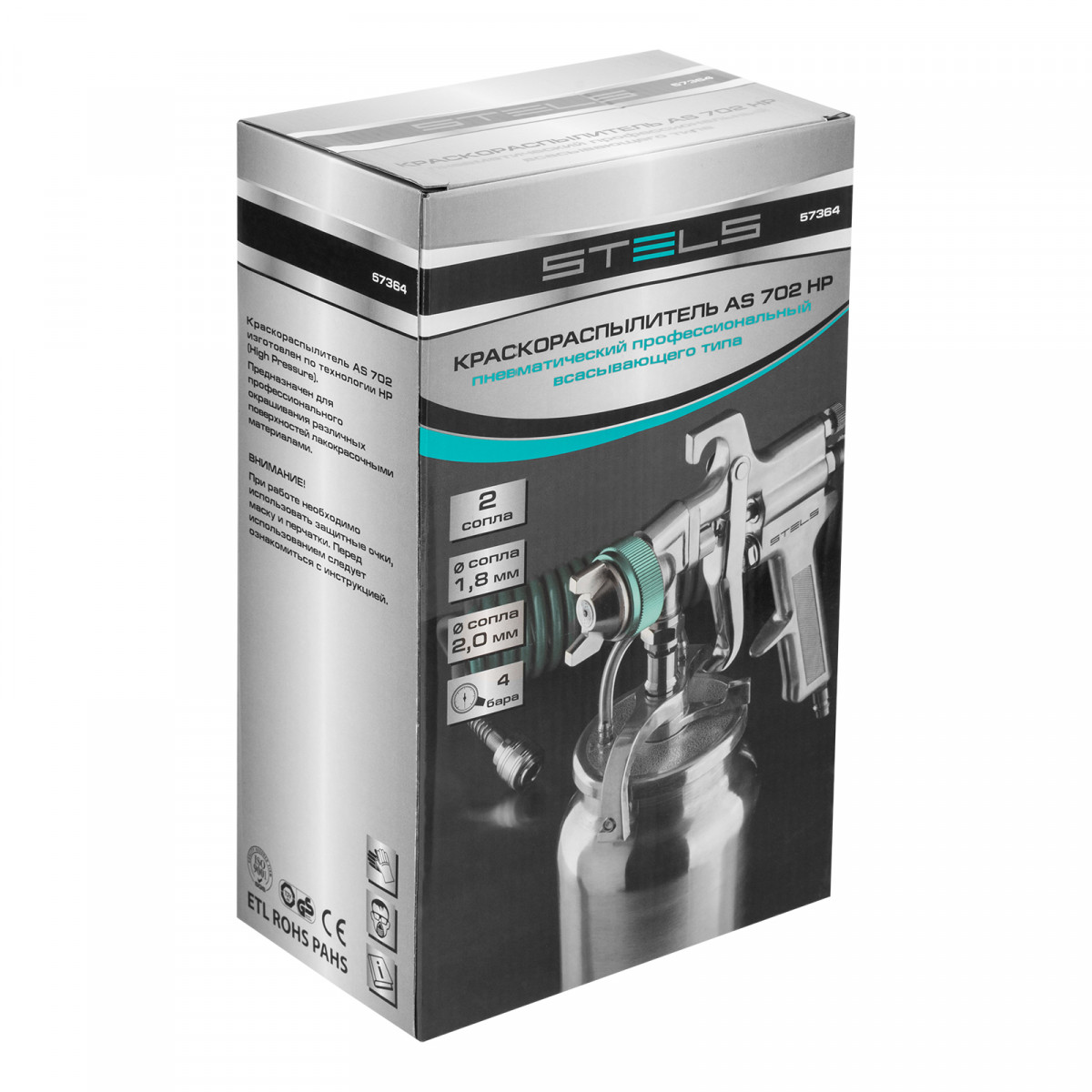 Краскораспылитель AS 702 НP профессиональный, всасывающего типа, сопло 1.8 мм и 2 мм Stels
