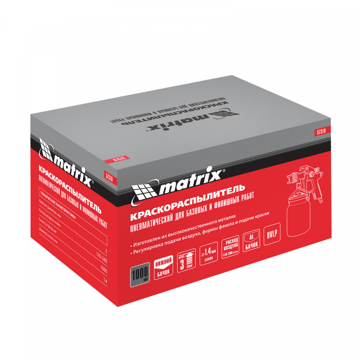 Краскораспылитель HVLP пневмат. с нижним бачком V= 1 л, сопло диаметром 1.4 мм Matrix