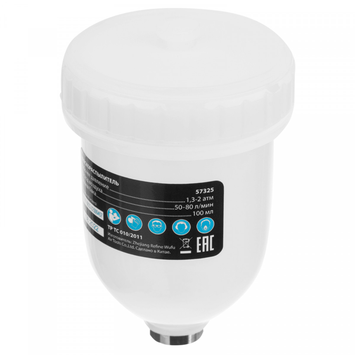 - Верхнее расположение бака — краскопульт удобно заправлять, лакокрасочный материал расходуется полностью.