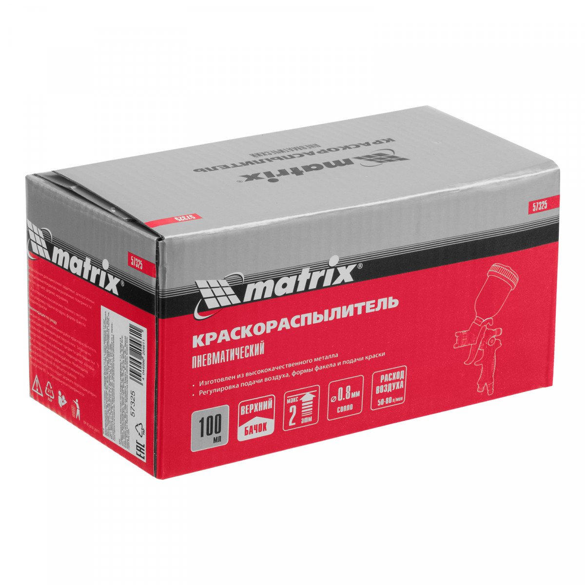 Краскораспылитель HVLP пневмат. с верхним бачком V= 0,1 л, сопло диаметром 0.8 мм Matrix