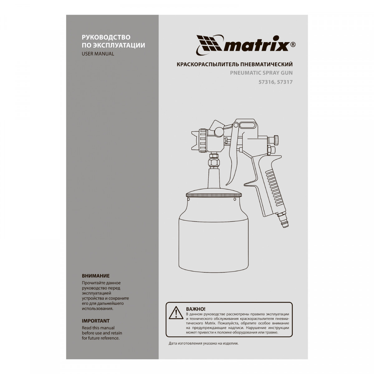 Пневматический краскораспылитель Matrix 57316 с нижним бачком объемом 1,0 л и соплами диаметром 1,2, 1,5 и 1,8 мм используется для окрашивания металлических, деревянных, керамических и пластмассовых поверхностей. Благодаря сменным соплам краскораспылитель может работать с различными по густоте составами: лаком, шпаклевкой, краской. Он пригодится на стройке, в автомастерской и на мебельном производстве.