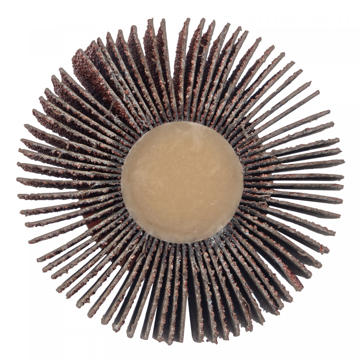 - Надежность — лепестки из прочной х/б ткани прикреплены к оправке при помощи бакелитовой смолы, поэтому круг устойчив к трению и давлению.