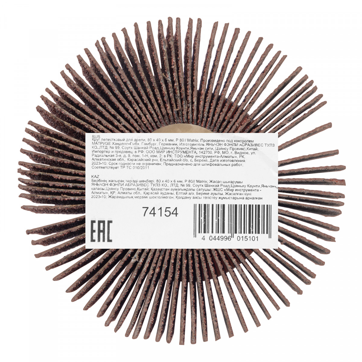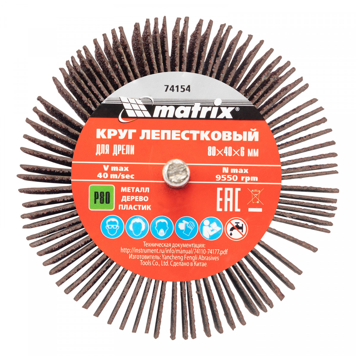 Круг лепестковый для дрели, 80 х 40 х 6 мм, P 80 Matrix