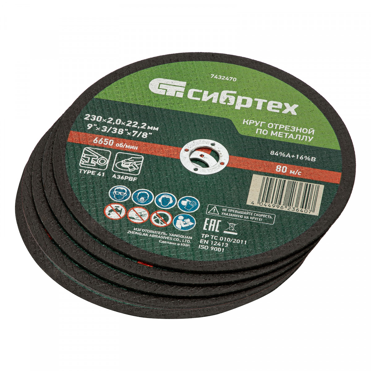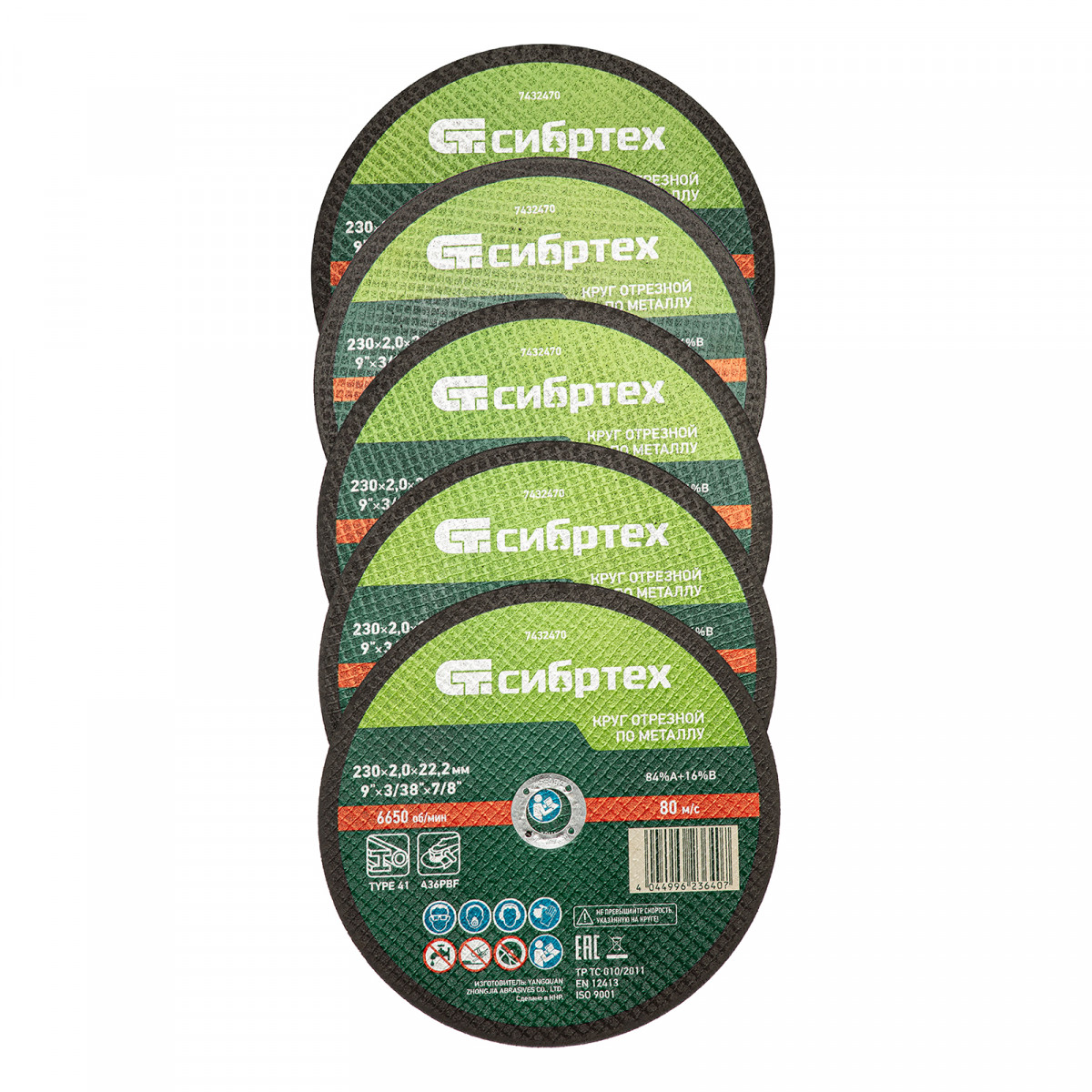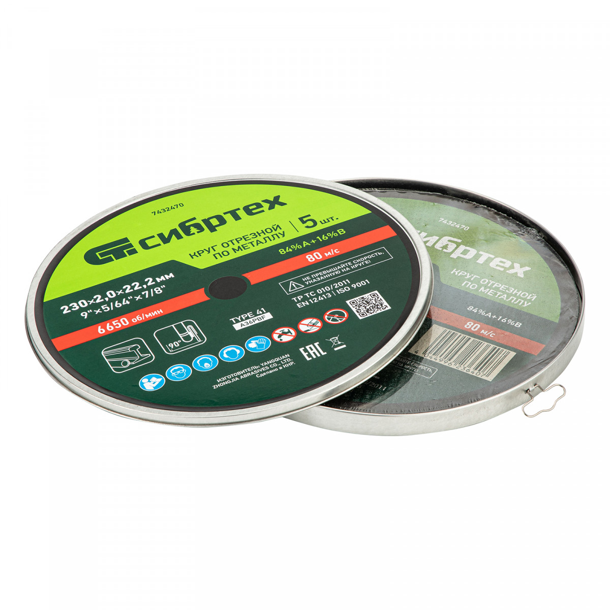 Круг отрезной по металлу Сибртех 84%A+16%B 7432470 диаметром 230 мм и толщиной 2,0 мм, 5 шт. в металлической банке, устанавливается на УШМ с посадочным размером 22,2 мм. Предназначен для сухой резки углеродистых сталей. Набор пригодится частному мастеру для проведения ремонтных работ дома или в гараже, также подойдет для профессионального применения.
