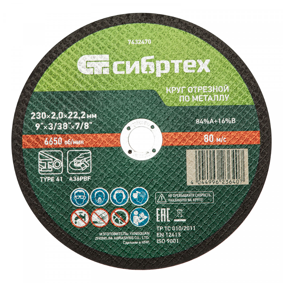 Круг отрезной по металлу, 230 х 2,0 х 22,2 мм, 84%A+16%B, в метал.банке, 5 шт. Сибртех