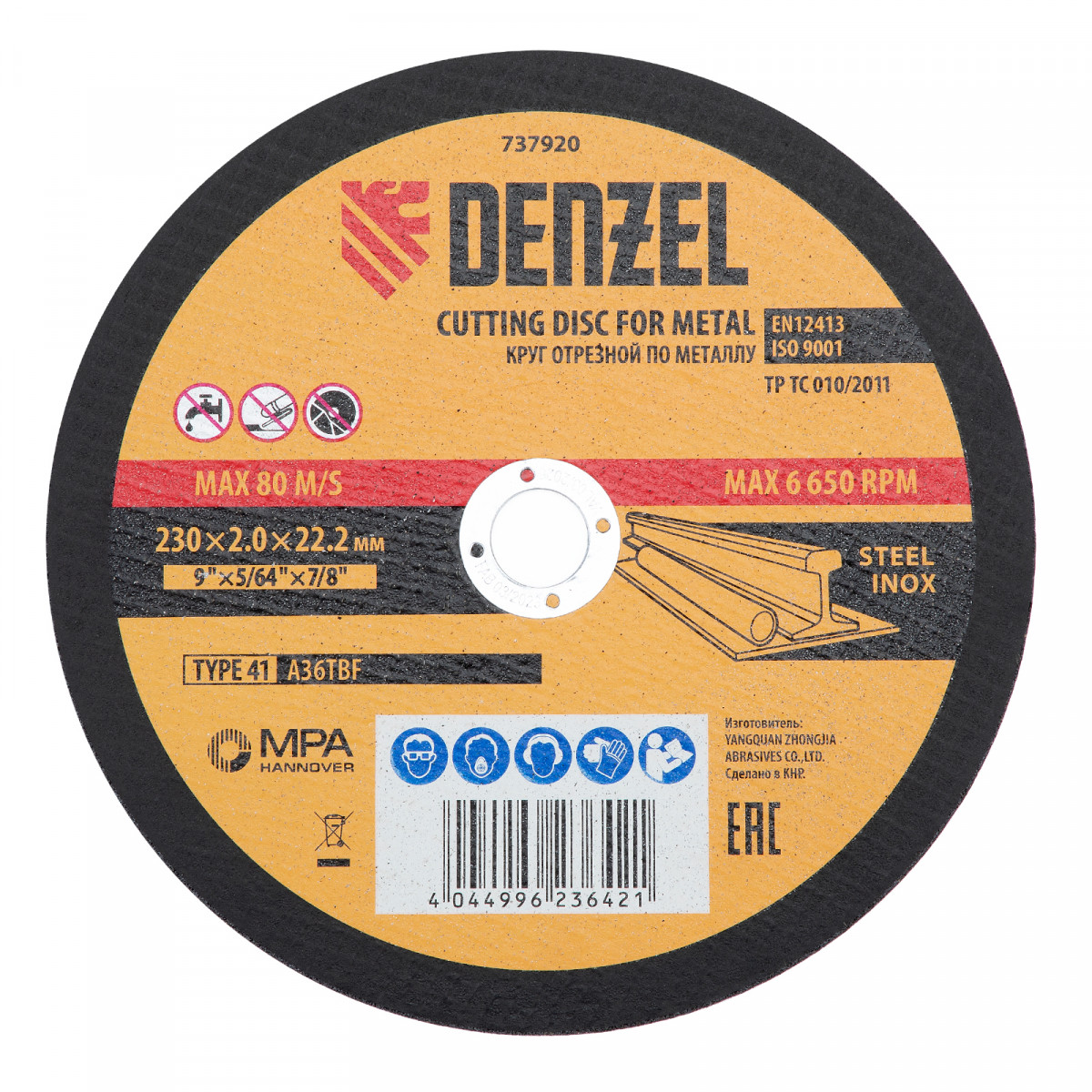 Круг отрезной по металлу, 230 х 2,0 х 22,2 мм, A36TBF, в метал.банке, 5 шт. Denzel