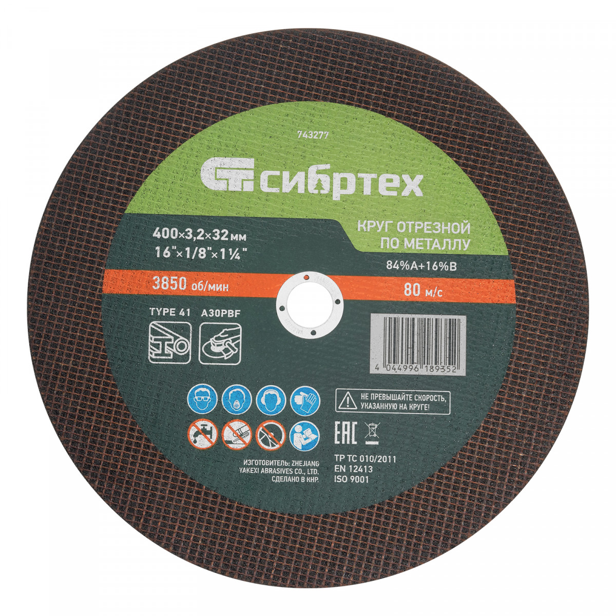 Круг отрезной по металлу, 400 х 3,2 х 32 мм, 84%A+16%B// Сибртех