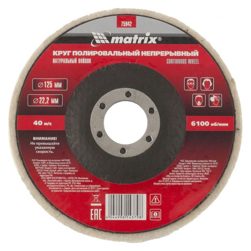Круг полировальный непрерывный из натурального войлока MATRIX 125*22,2 мм