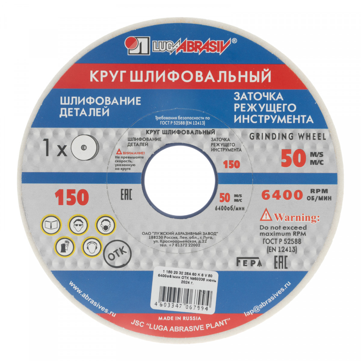 Круг шлифовальный, 150 х 20 х 32 мм, 25А, F60, (K, L) "Луга"