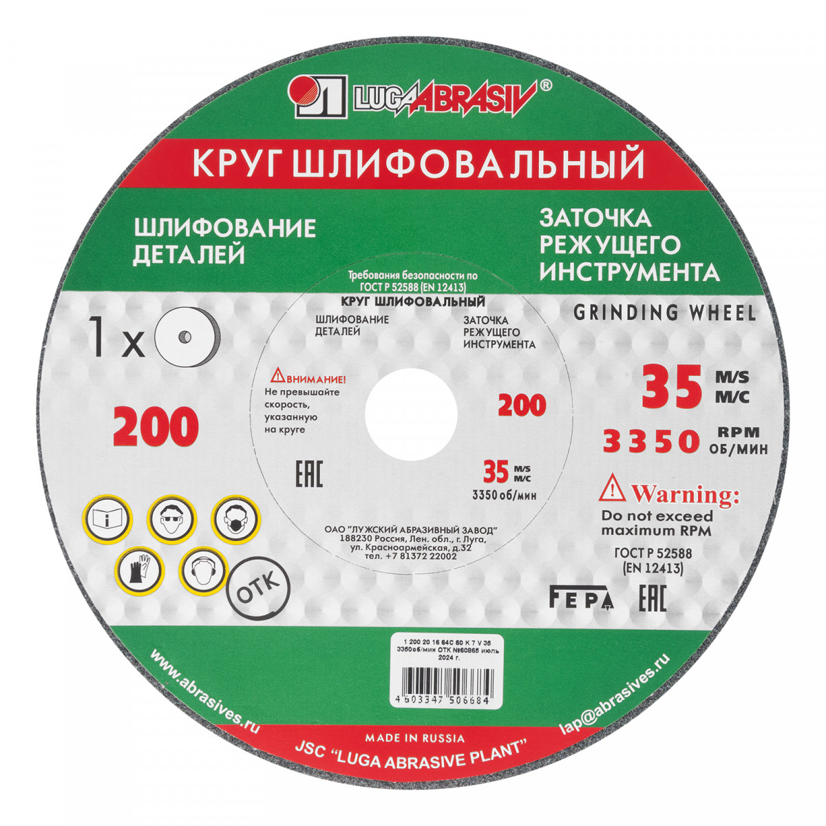 Круг шлифовальный, 200 х 20 х 16 мм, 63С, F60, (K, L) "Луга"