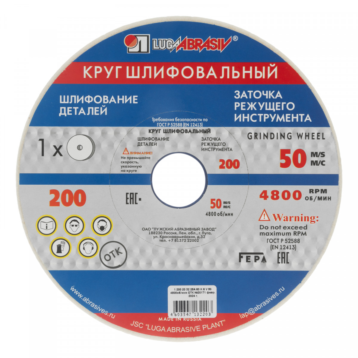Круг шлифовальный, 200 х 20 х 32 мм, 25А, F60, (K, L) "Луга"