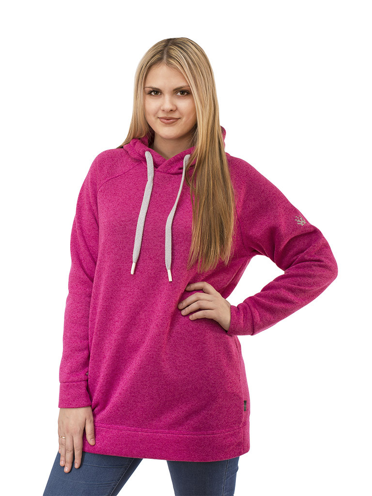 Куртка-анорак женская ТМ «Росомаха» удлиненная свободного кроя прямого силуэта. Предназначена для активного отдыха, занятия спортом, и повседневной носки в прохладную погоду. Легкая теплая комфортная модель, изготовленная из флиса "вязанка" - материала, который поддерживает свободную циркуляцию воздуха, прекрасно держит форму, хорошо впитывает влагу, быстро сохнет.